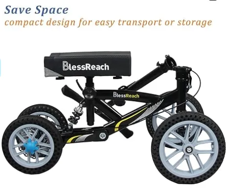 - SAFETY & SENSITIVE BRAKE – The first disc brake knee walker in history, this all-terrain scooter walker has disc brakes and locking hand brake for excellent control while navigating.