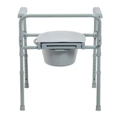 Versatile PreserveTech™ Folding Commode can be used as a bedside commode, raised toilet seat, or a toilet safety frame. The adjustable folding commode is constructed with a lightweight and durable rust-resistant steel frame and includes several leg adjustments to accommodate different heights.