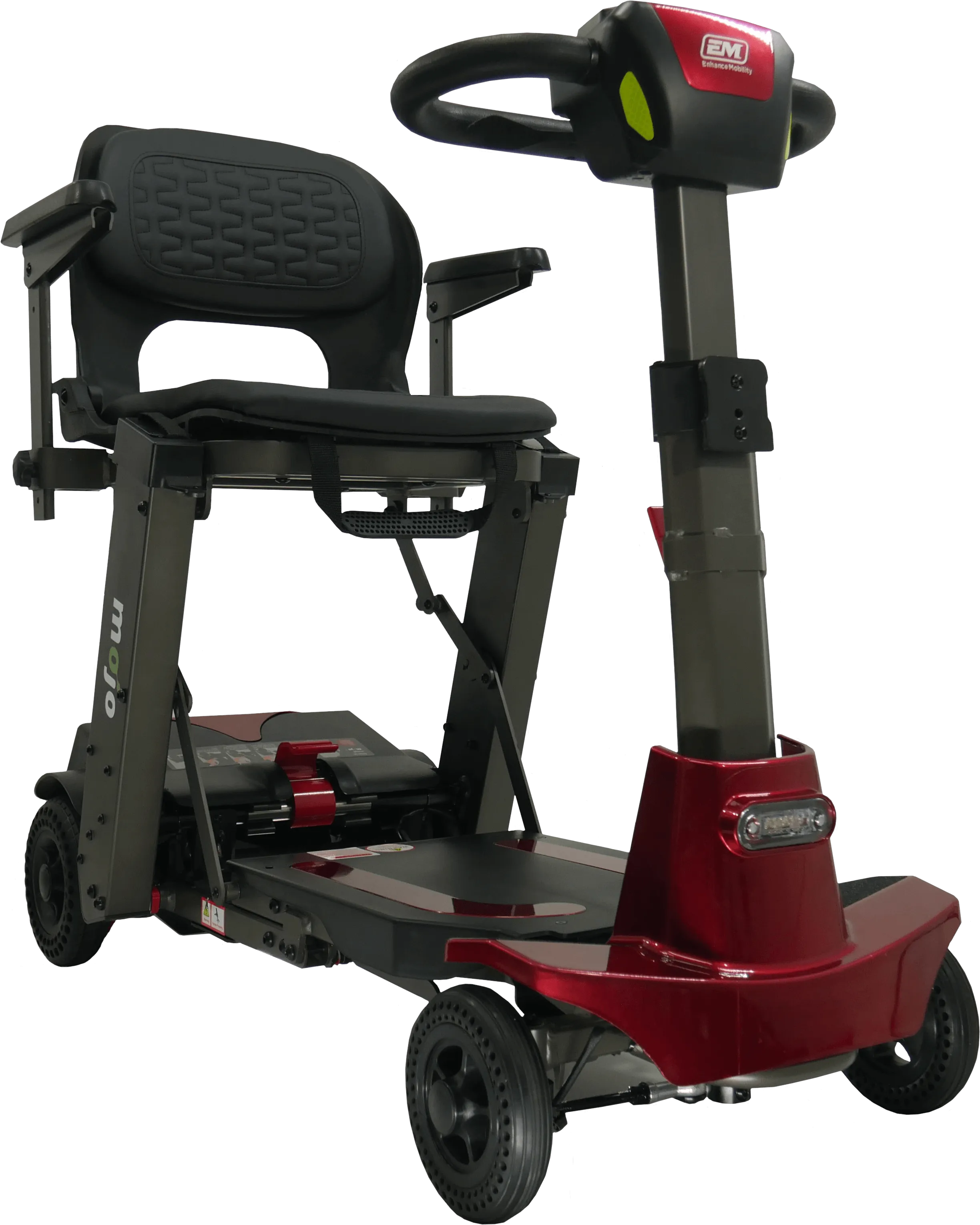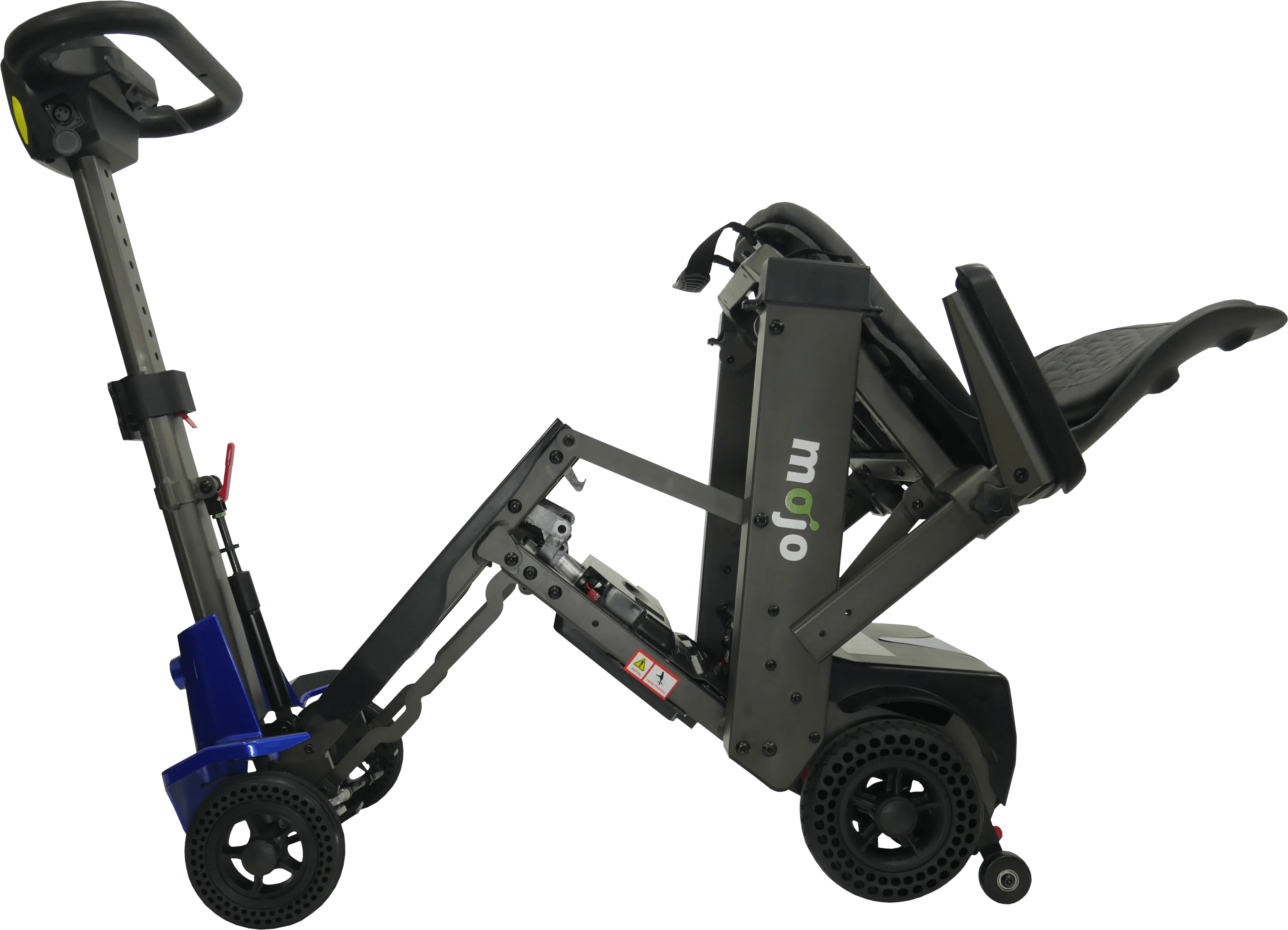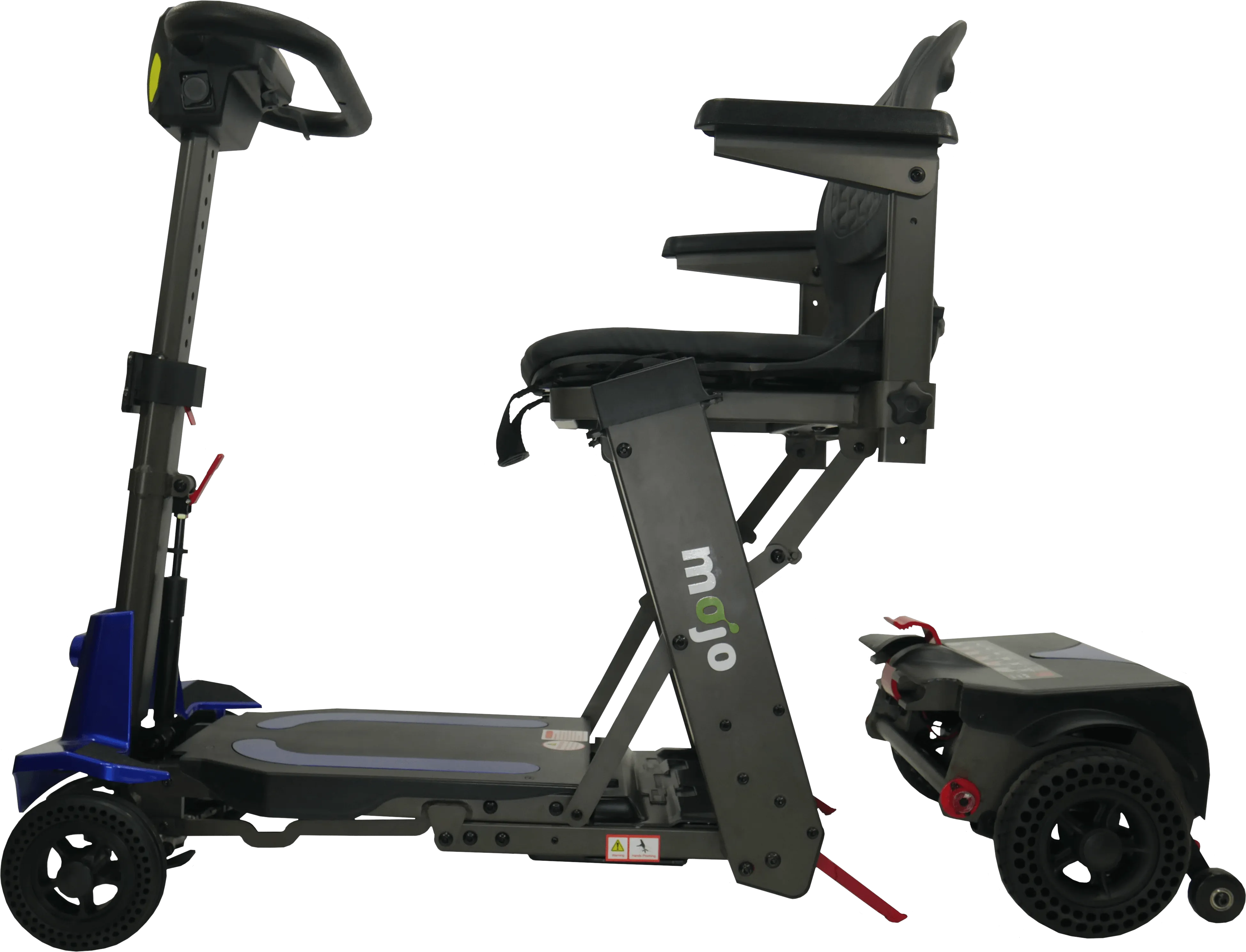 The Mojo scooter is the first and only scooter to combine the ease and convenience of a manual folding scooter with the option to quickly split the scooter into two smaller pieces for easier and lighter lifting. No more struggling with a heavy scooter.