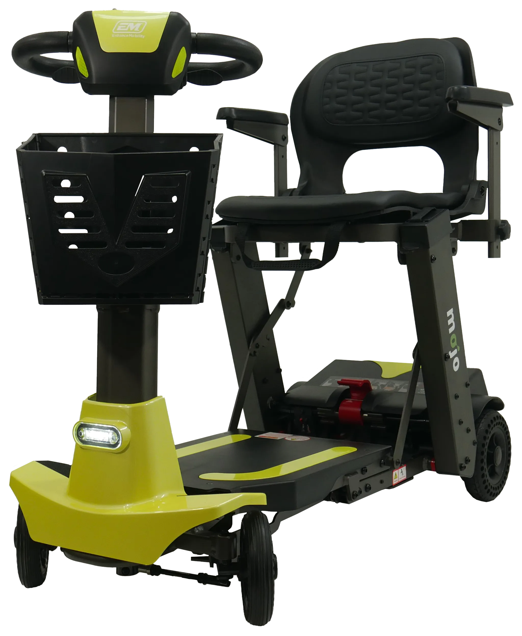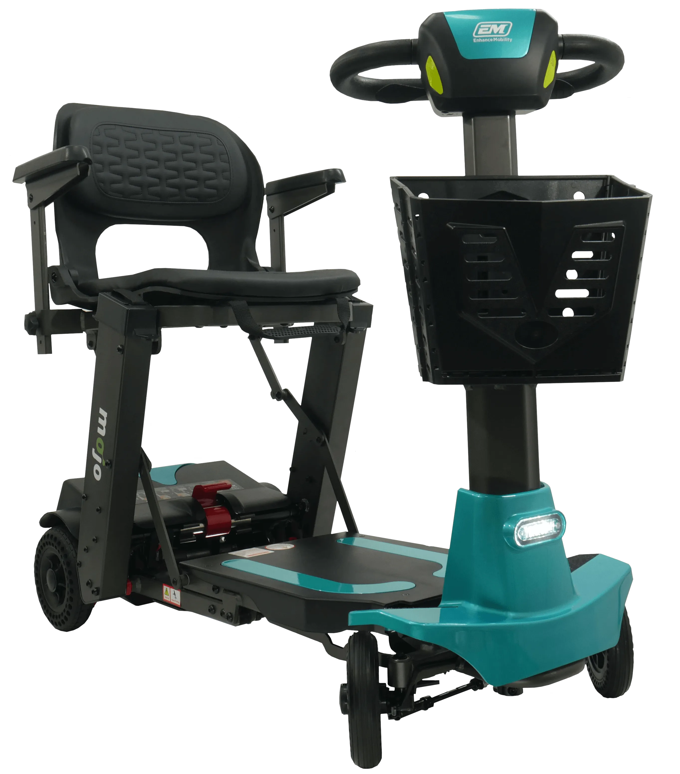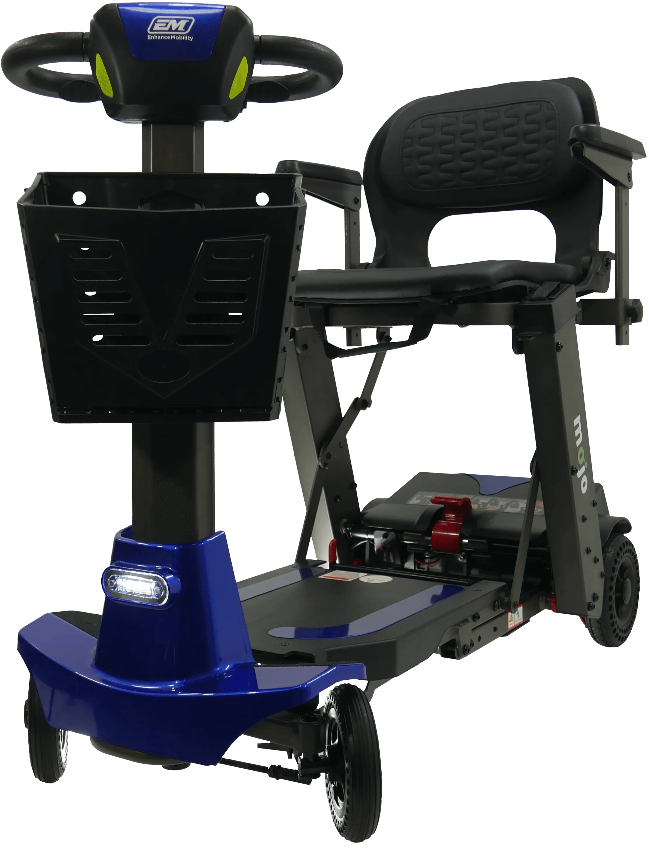 The Mojo scooter is the first and only scooter to combine the ease and convenience of a manual folding scooter with the option to quickly split the scooter into two smaller pieces for easier and lighter lifting. No more struggling with a heavy scooter.