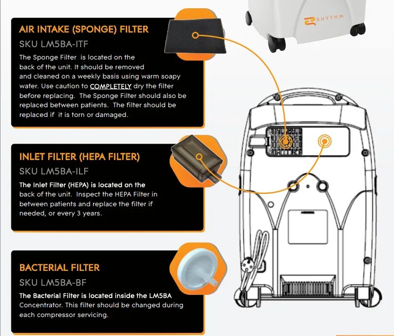 • Alarms for temperature, oxygen purity, high and low pressure, power failure, and blockage
