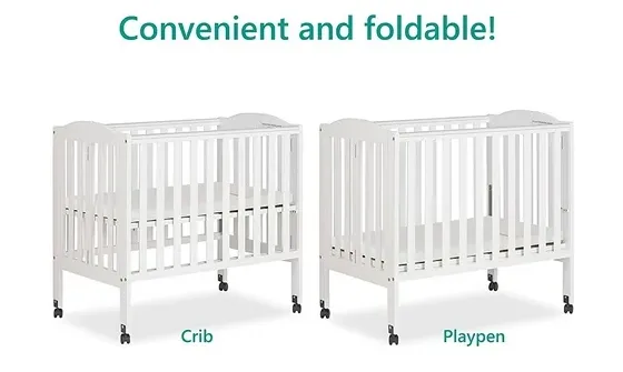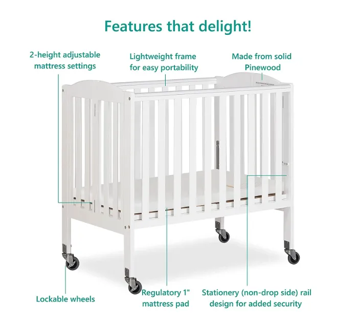 Compact 3/4 Size Portable Crib with Mattress, Sheets & Comforter